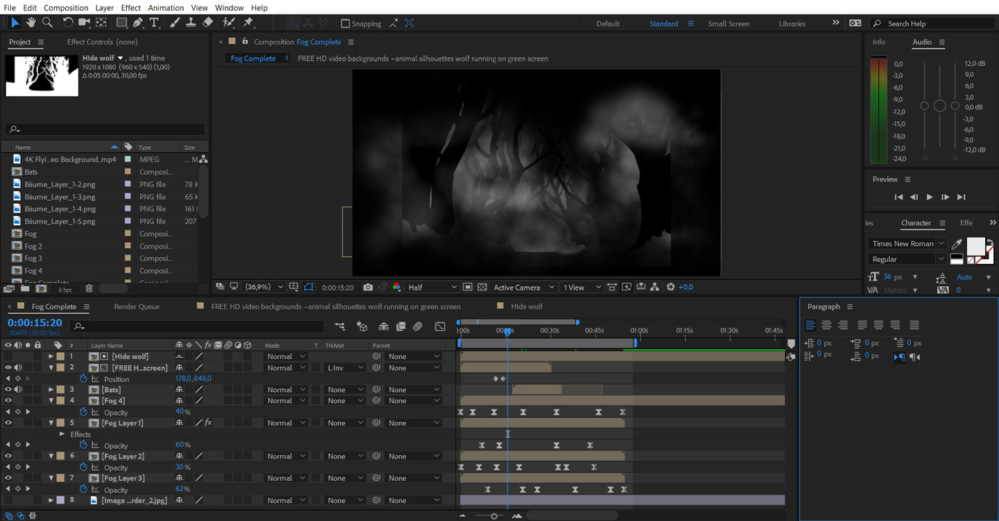 For this study, I took an image of an alley and wondered if the impression of depth could be enhanced again with a projection on the still image. To achieve such an impression, many masks and layers had to be created to differentiate the different image depth and play with it. In the first part of the projection, realistic manipulations were attempted to revive the still image. In the later part, more artistic and abstract animations were ventured.