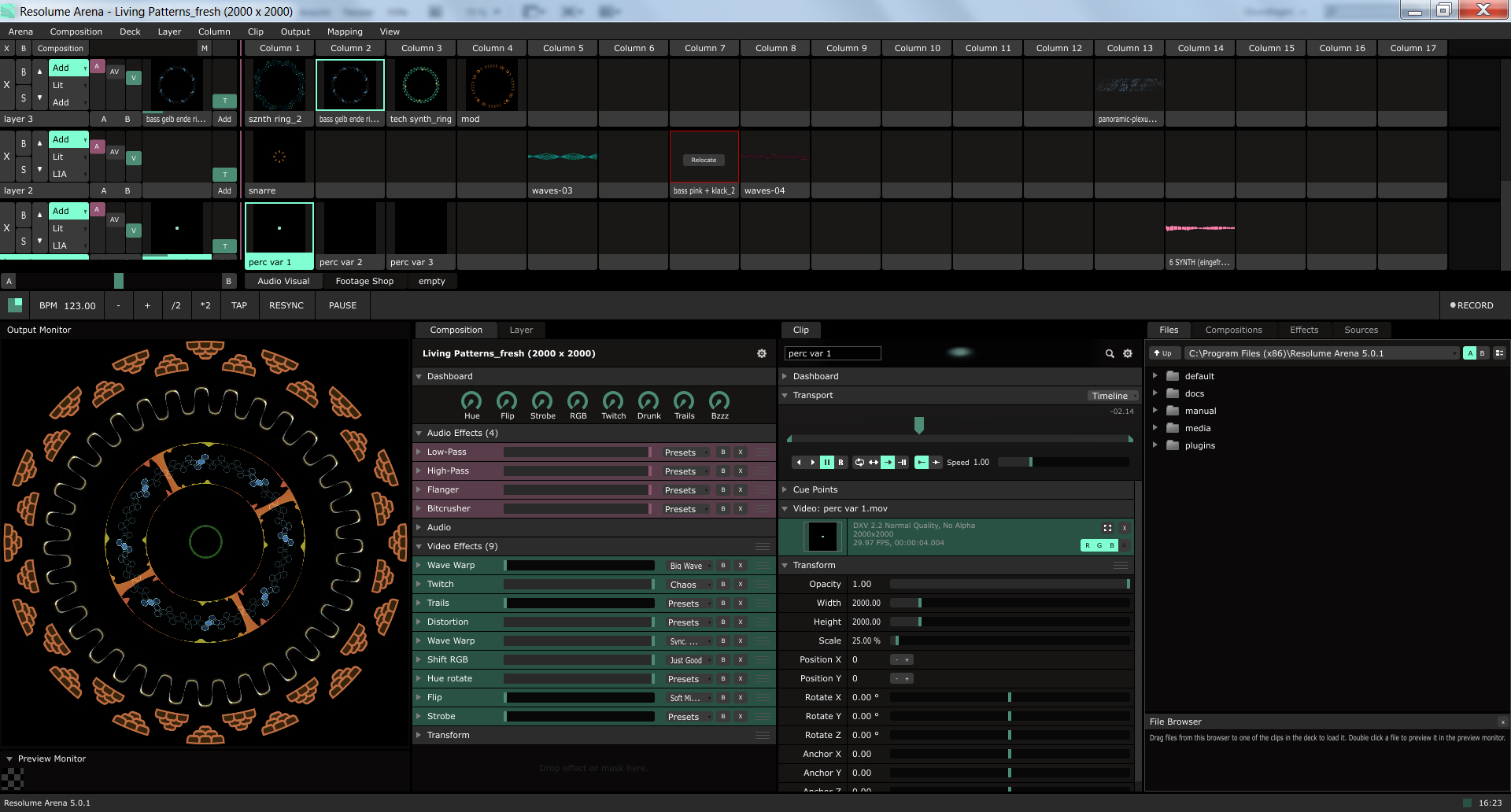 This technique of linking the softwares also allows a VJ/DJ to improvise at each performance, without losing the advantage of visuals perfectly matching his sound-set.